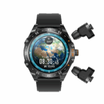 The Porodo Hype Smartwatch With Earbuds is a smartwatch that integrates true wireless earbuds into its side, giving you a combined wearable and audio experience. The earbuds dock into the watch when not in use, making them easy to carry and charge.