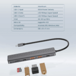 The Powerology 6 in 1 Slim USB-C Hub is a compact and efficient connectivity solution designed for modern laptops, tablets, and smartphones. With its ultra-slim aluminum design, this hub expands a single USB-C port into multiple essential connections, making it ideal for work, travel, and everyday productivity.It features a 4K HDMI output that delivers sharp, smooth visuals for presentations, entertainment, and extended displays. High-speed USB data transfer up to 10Gbps ensures fast file sharing and reliable performance for external devices such as SSDs, flash drives, keyboards, and mice. The hub is engineered for stable connections, efficient heat dissipation, and plug-and-play convenience without the need for additional drivers.Perfect for professionals and students, the Powerology 6 in 1 Slim Hub combines performance, portability, and durability in one sleek accessory—keeping your workspace organized and your devices fully connected.