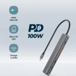 Powerology 6 in 1 Slim 4K HDMI USB-C Hub 10Gbps Data Transfer